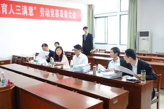 (图为评委席,评委交流意见)