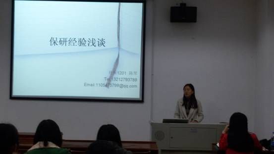 (供稿人:行管1301班周阳)2015年11月12日,公共管理学院2013级于文泉楼208院会议室召开“保研”交流会,邀请2012级“保研”成功学生和大家分享经验,分别是行管1201班保研到南京大学行政管理的刘然,劳动1201班保研到中国人民大学企业管理的庄泽宁,城管1201班保研到浙江大学教育经济管理的蔡雯莹,劳保1201班保研到武汉大学劳动与社会保障的陈琴。