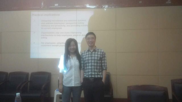 5月26日上午9点,由公共管理学院劳动与社会保障系主办的关于“主动型人格对情绪劳动和工作绩效的影响”专题讲座在文泉楼北303会议室顺利举行。本次讲座邀请到香港浸会大学霍苑渊老师(助理教授、博士生导师)作为主讲人。 霍苑渊老师的研究兴趣聚焦在团队领导力、人与环境匹配、情绪调节、组织幽默等方面。公共管理学院各相关专业老师、研究生参与此次讲座,赵君老师担任主持人。