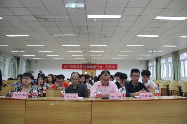 6月2日下午3点,公共管理学院2016年团员代表大会暨学生代表大会在文润楼303教室隆重举行。大会由公共管理学院第十四届学生会主席林广锡主持,出席典礼的领导嘉宾有:校团委张艳芸老师,院党委副书记龚家友老师,MPA教育中心办公室主任柯锐老师,院团委书记范献龙老师以及校学生会副主席孙建恒。