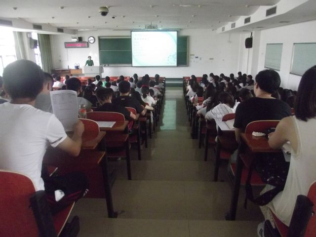 会前,向全体13级学生发放了就业推荐表。会议开始,首先黄勤老师简要了介绍本次大会的几项内容。她展示了详实的资料,并对这些资料和相关就业政策做出了深入的分析和解读。黄勤老师依次谈及考研、求职、留学、公务员考试和入伍需要注意的事项,当说到入伍的优惠政策时,更是引起了学生们一片热议。最后,她幽默地引用了王健林一个亿的小目标的例子表达了对学生们能够如期毕业的期望以及对他们未来衷心的祝愿。