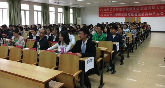 10月13日中午12点半,公共管理学院运动会表彰大会暨校运会动员大会在文润306拉开序幕。院党委副书记龚家友老师,院团委书记兼15级辅导员范献龙老师,16级辅导员李荔老师、柯锐老师,分团委副书记厉杰,学生会主席曹瑜,团委宣传网络中心主任朱锐及学生会副主席王萌、邢芳菲、鲁文静出席了本次大会。