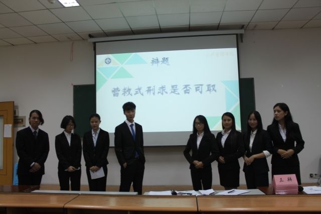 10月13日晚上19:30,公共管理学院辩论队招新表演赛在文泽楼306成功举行,到场的嘉宾有16级辅导员柯锐老师、学生会副主席王萌以及辩论队队长郑钰琪,此次辩论赛双方围绕“营救式刑求是否可取”展开了激烈交锋。