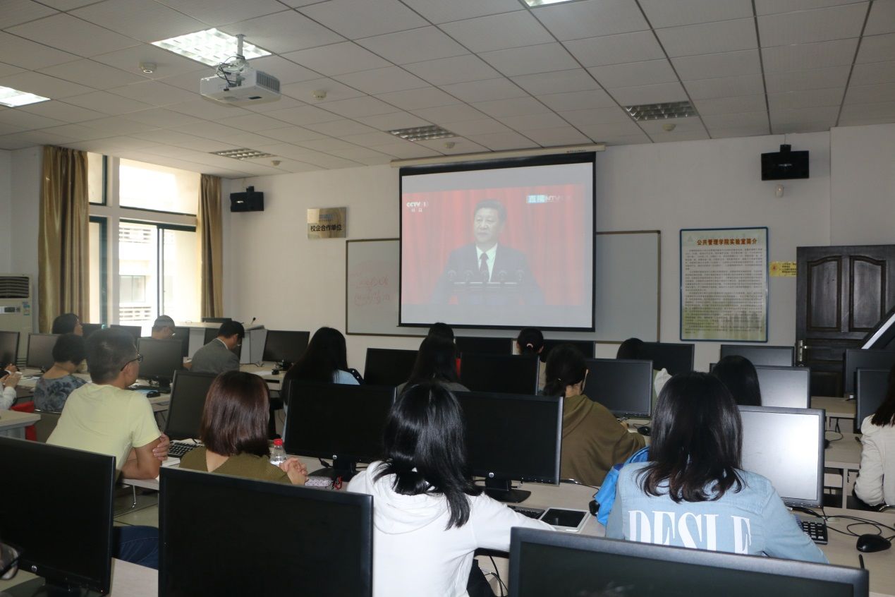 为纪念红军长征胜利80周年,弘扬伟大长征精神,不忘初心,继续前进,走好今天的长征路,2016年10月21日十点,纪念红军长征胜利80周年大会在北京举行,习近平总书记在会上发表重要讲话。学院部分党委委员、学院中心理论组部分成员、教工党员代表、和本科生、研究生党员代表在学院实验室集中观看了会议现场直播。