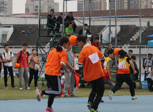 风雨挡不住年轻而炙热的心,雪白的起跑线激励健儿们上紧发条。龙凤戏珠项目难度系数较大,要求男女双方队员用双额顶住球,同时注意腿部协调,比拼默契与速度。在裁判员提醒下一组准备时,李金龙、吕英倩两位同学迅速将球顶在额间,并进行微调,以找寻最不易掉落的位置。发令枪声响起,几组选手皆不甘示弱,你争我赶、不相上下!此时正是力量的拼搏、耐力的考验、默契的展现!面对这些,李、吕毫不畏惧,赶超一组组参赛选手,终于脱颖而出、位列前茅。在围观同学的呐喊欢呼声中,在队员双方的殷切目光中,在活力热情的氛围中,李、吕以迅雷不及掩耳之势冲过了终点!他们给这么多天的辛苦训练交上了一份满意的成绩单。虽是短短的五十米,但是运动员在其中付出的时间与精力,艰辛与汗水却并未因此而少缺半分。