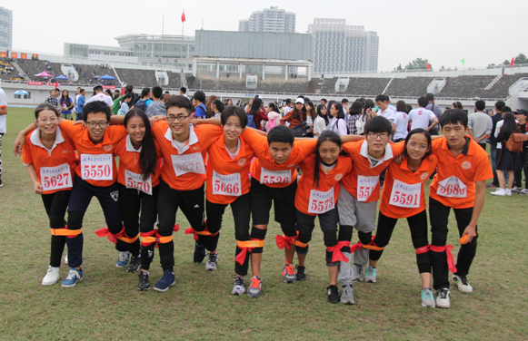 比赛正式开始时,某些学院出了状况,或因为中途绳子松开而丧失了取胜的机会,或因有人摔倒耽误了时间。公共管理学院的选手们在听到“预备”的口令后纷纷弯下腰,做好起跑的姿势,随着一声令下,选手们并驾齐驱向终点冲去,他们井然有序,配合默契,嘴里齐声喊着“一二一”的口令,他们一脸专注,男女生左右脚错开相互协调配合,直到最后冲线扑倒在垫子上,在此过程中,公共管理学院的同学们始终热情高呼,加油助威,最终他们以6秒52的成绩取得此次比赛的第四名。