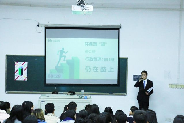 活动开始后,各班依照抽签顺序上台进行限时五分钟的成果展示,精美的PPT,绘声绘色的视频,众人签名以示志愿活动精神的横幅,精心制作的海报吸引着观众们的眼球……各班从生活细微之处入手,发掘出如环保绿瓶,以废换绿等活动的深刻含义。展示代表或富有激情地演讲,或平实真切地述说,使评委们和观众们似乎都体会到了公益活动带给志愿者群体心灵的满足。