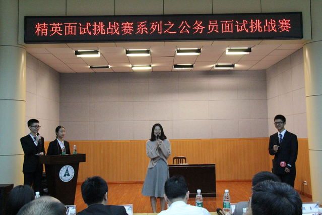 (学生记者杨雅婷陈珂王立昊)4月14日晚7点,由公共管理学院举办的品牌活动:公务员面试挑战赛决赛在文潭楼一楼邓析堂顺利举行。担任本次大赛的评委有:民进湖北省委员会副主任、米兰电竞·(中国区)教授、博士生导师、湖北省统计局副局长叶青,湖北省工商局市场处副处长陈勇,湖北省国税局大企业税收管理处副处长尹俊,武汉三立教育创始人、三立教育发展有限公司总经理石晓和江夏区委党校老师、知名公务员考试培训师罗凤华。同时参加本次活动的学院领导老师有:党委书记王贞为、党委副书记龚家友、14级辅导员李尚楠老师、15级辅导员王阳老师。