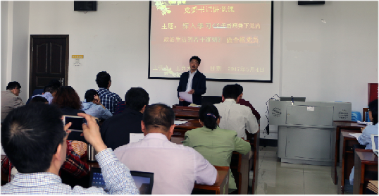 2017年5月4日下午14:30,公共管理学院党委书记王贞为在文泉楼北208会议室为学院全体教职工党员上党课。本次党课的主题是深入学习《关于新形势下党内政治生活的若干准则》,做合格党员。