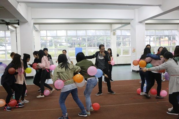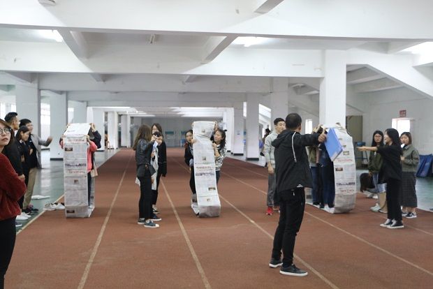 下午14:00,活动正式开始。本次素质拓展以小组为单位展开,共分为3个小组,每组推选一名同学担任队长。大家分别进行了“五毛一块”、“纸杯传水”、“耳机传话”、“无敌风火轮”、“气球大战”这五个具有创意的比赛项目。