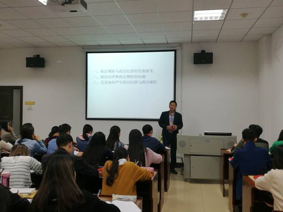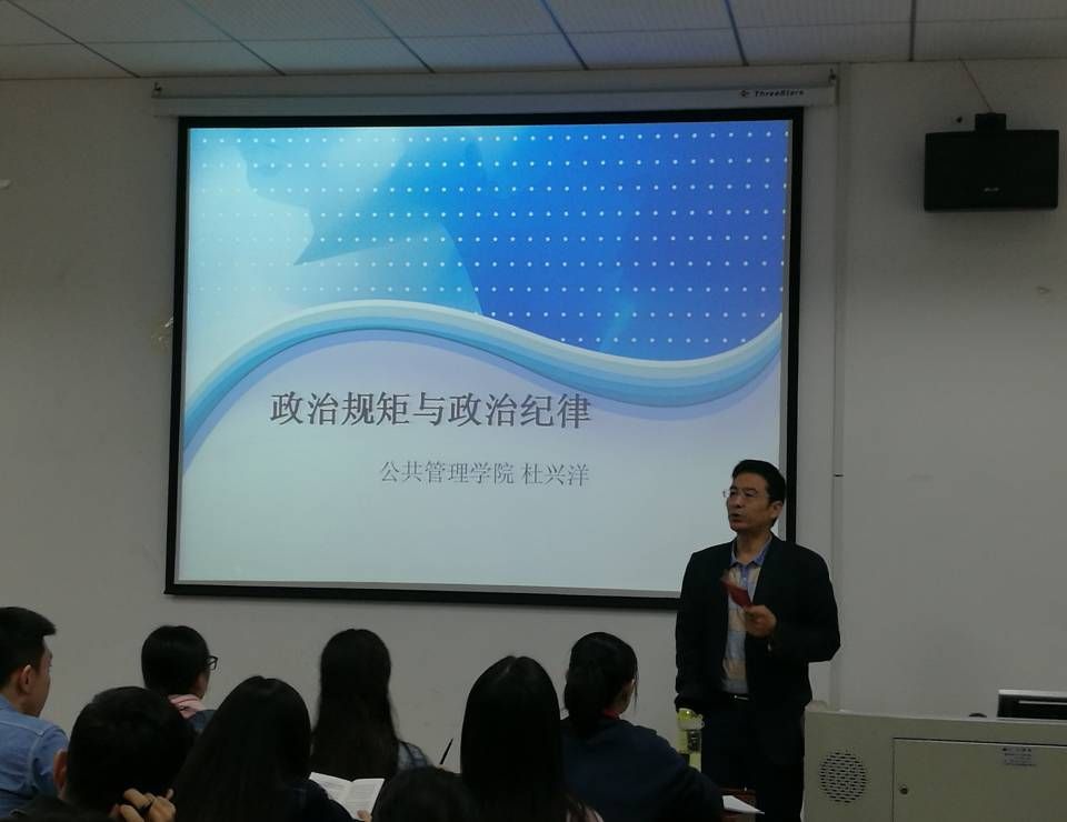 杜兴洋教授认为,我院预备党员和发展对象要牢固树立严守政治纪律和政治规矩的观念,认真研读中国共产党章程和党的十九大报告,在学习和生活中以高标准从严要求自己。