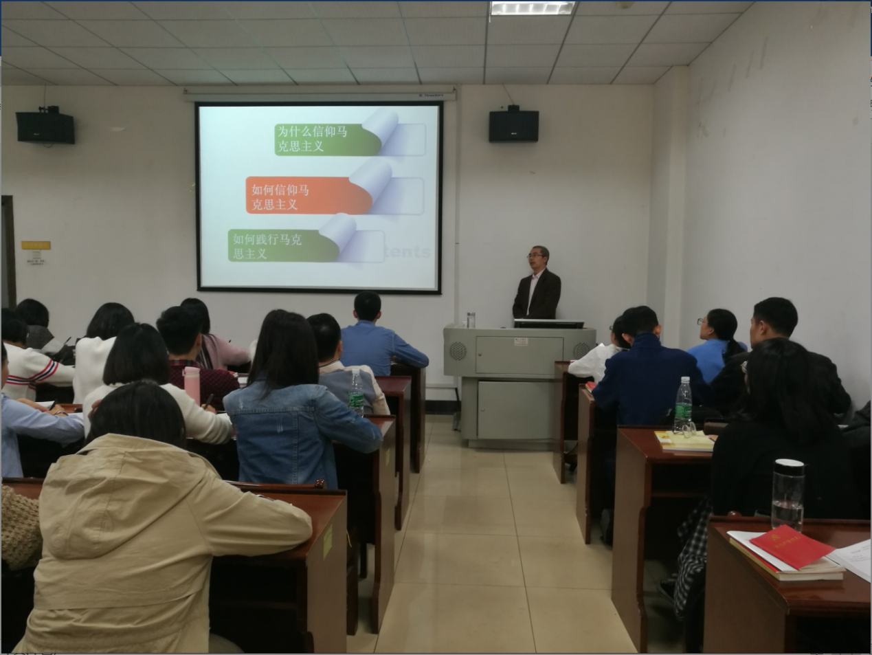 孔凡义教授主要从为什么信仰马克思主义、如何信仰马克思主义和如何践行马克思主义三方面内容进行了详细解读。首先,孔凡义教授以一个共产党员和一个学者的身份,引用自己的生活经历,从马克思主义是具有世界影响的主义、马克思主义是道德高尚的主义、马克思是科学真理的主义,指出了坚定马克思主义信念的必要性和重要性。随后,孔凡义教授指出,预备党员和发展对象应该从阅读马克思主义经典著作、深入社会调查、深刻思考和分析、联系中国实际理解理论四方面来信仰马克思主义。最后,孔凡义教授提出,作为预备党员和发展对象,应该坚持做一个善良的人、一个有理想的人、一个实事求是的人、一个有理论深度的人。