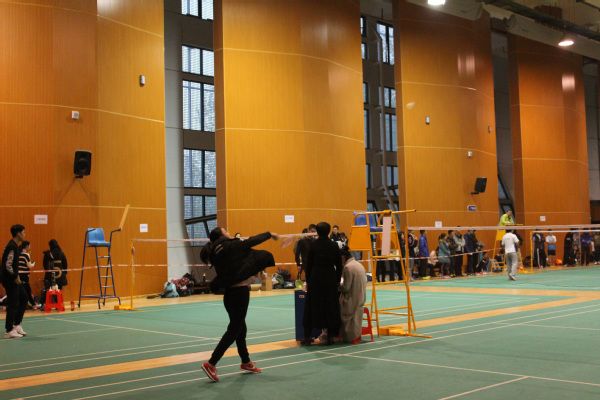 下午八强争夺赛开始前,我院运动员们早早来到运动场内开始赛前热身。第一场比赛中,我院惜败给工商学院,虽出现一些失误,但运动员们表现得还是十分精彩。第二场与金融学院的对决中,我院女单选手发挥出色,与对方第一女单激烈角逐,双方比分不相上下,比赛一度进入白热化,虽以21:17惜败,但还是“羽”出了精彩。最终我院不敌强敌金融学院,位列第八。