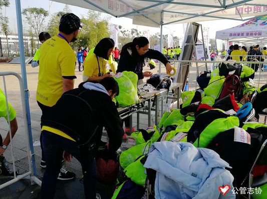 八点以后,参赛者们陆续进场,饮水处和存包处迅速聚集了大量参赛者,志愿者们耐心为每位参赛者服务,维持现场的秩序。早上九点,随着发令枪响,比赛正式开始,计时点和手环发放处的志愿者们全神贯注,关注比赛进程,为运动员计时和发手环。约半个小时后,运动员们陆续跑过终点,奖牌发放处的志愿者们为运动员们戴上奖牌和名次牌。而在赛后拉伸处,志愿者们为疲劳的志愿者拉伸按摩,让跑过十千米的运动员得以放松酸痛的肌肉。十一点左右,运动员陆续离开,而志愿者们的工作还没有停止,他们细心地清点好物资并归还到指定地点,最后将现场打扫干净。当所有工作结束后,志愿者们清点好人数后集体在志愿汇上进行签退,最后上车离开。