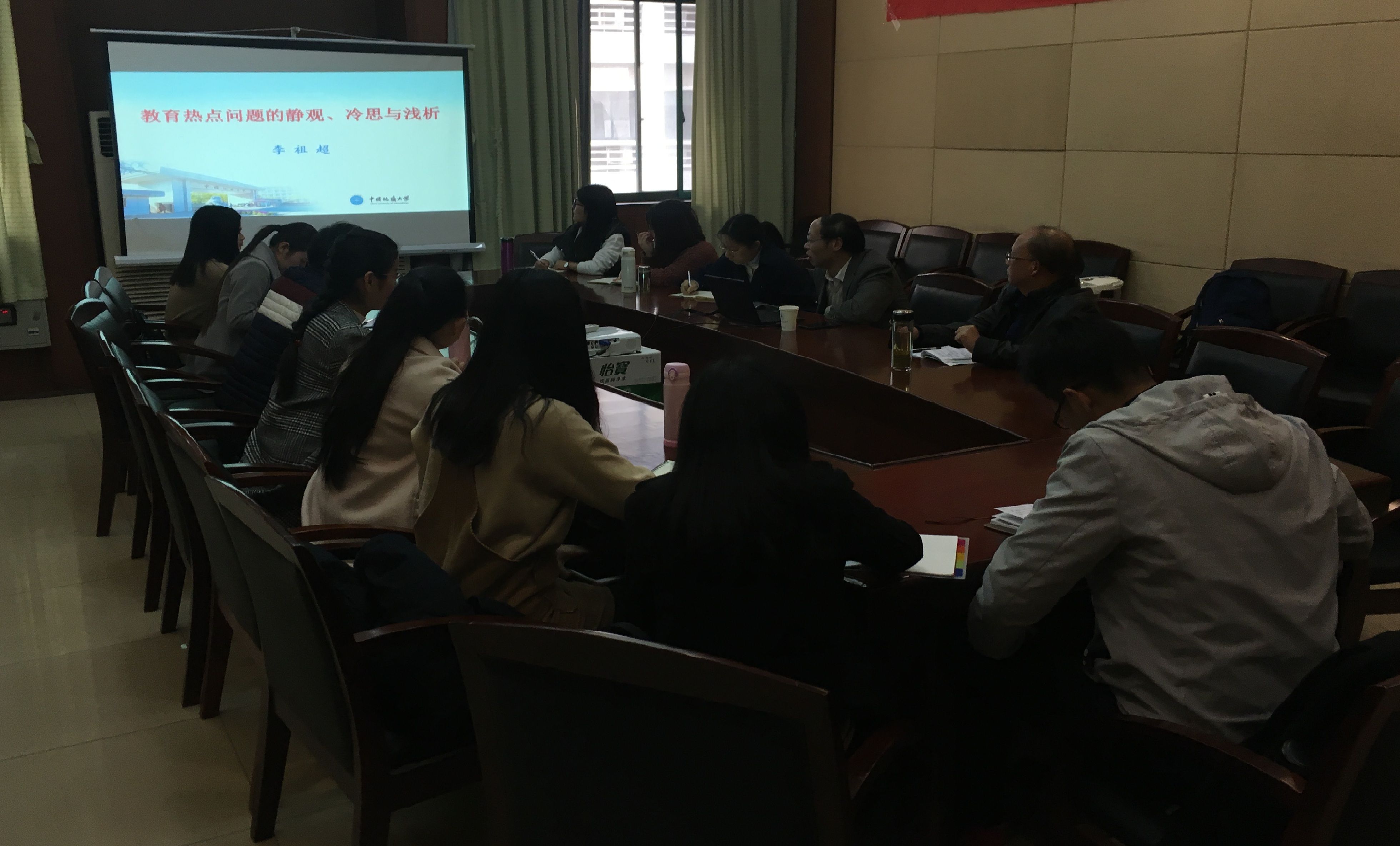 (通讯员:刘晓萌)11月24日下午,由米兰电竞·(中国区)教育发展研究所和教育经济与管理导师组联合主办的“十九大教育发展与改革新思想”主题讲座在文泉北303会议室举行。本次讲座邀请了中国地质大学李祖超教授和湖北省教育科学规划领导小组办公室主任赵友元研究员主讲,讲座由教育经济与管理导师组组长和研究所主任徐文副教授主持,李明强教授、魏萍副教授等导师组教师以及教育经济与管理专业硕士研究生参加。