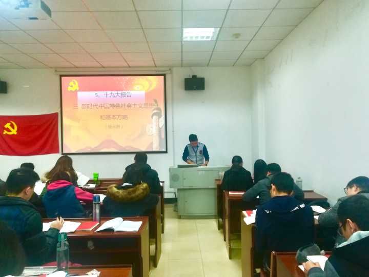 然后,杨元翀同志带领大家学习党的十九大报告——习近平新时代中国特色社会主义思想和基本方略。习近平新时代中国特色社会主义思想是最核心、最本质的指导思想,八个明确是核心要义,十四条方略在实践层面上进一步阐释,理论联系实践,建设中国特色社会主义伟大事业。