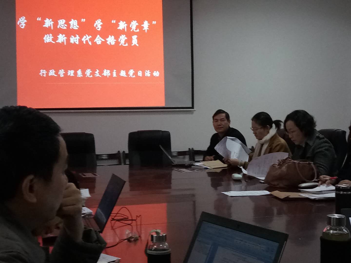(宣传委员杨磊供稿)2017年12月7日,行政管理系党支部在文泉楼北305会议室举行了党日主题活动,活动主题为“学‘新思想’、‘ 新党章’,做新时代合格党员”,重点学习了中国共产党章程(修正案)》,活动由行政管理系党支部书记苏忠林主持,系全体党员参加了此次主题活动。
