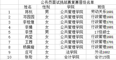 新闻网讯(学生记者 吴尘 摄影 黄心怡)3月31日晚上7点,公共管理学院公务员面试挑战赛复赛在南湖校区文泉楼北203教室和208教室举行。公务员面试挑战赛由公共管理学院团委学生会学术部和公共管理学院研究生会共同承办,目的是为我校学子提供真实的公务员面试环境,提高其综合素质和就业能力。本次活动邀请了来自中共武汉市江岸区委组织部的张立和来自中共武汉市硚口区纪律检查委员会的汪志红担任复赛评委。