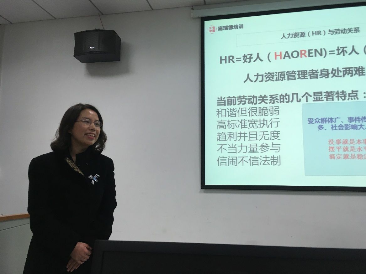 为提升相关专业学生的就业能力,我校公共管理学院特邀校企合作单位武汉施瑞德人才管理顾问有限公司蒋杏杏女士为来我校举行了关于企业劳动关系管理实务的专题讲座。蒋杏杏老师是国家高级人力资源管理师、心理咨询师、武汉市十佳创业导师,具有20余年企业高层管理经验,具备丰富的劳动关系管理和人力资源体系建设实战经验。
