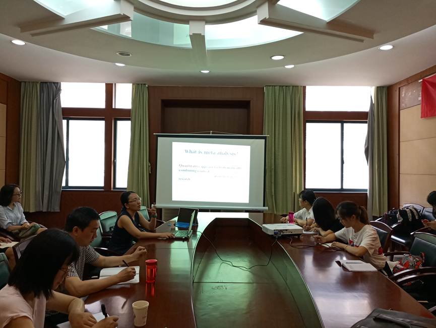 在讲解结束后,各位老师和研究生提出了自己关于研究和学习方面的疑问,并进行了充分交流。比如此类论文发表的可能性、元分析研究方法的条件限制、元分析研究方法的具体运用等。
