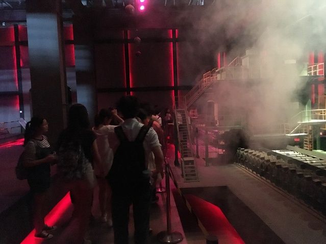 在武钢博物馆内,讲解员给同学们详细介绍了武钢的创设背景、冶金术的发展、武钢的发展历史与武钢对我国军工业、建筑业、以及汽车制造业的贡献。博物馆内还利用声光电技术模拟再现了炼钢仿真流程,令同学们叹为观止。
