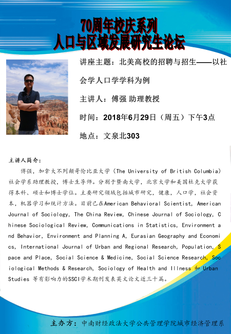 学术校庆名家讲坛——傅强:北美高校的招聘与招生——以社会学人口学学科为例