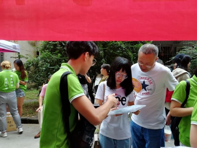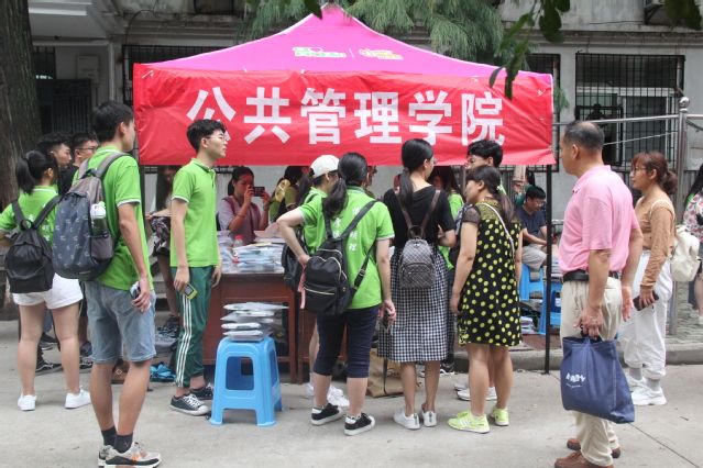上午7点,志愿者们在公管学院迎新点迎来了第一批报到的新生。在到达宿舍楼之前,新生们与自己的迎新志愿者取得了联系,到达宿舍楼后,志愿者们将学院准备的资料包交与新生,并带领他们进入宿舍。志愿者们不仅为新生办理好物品交接,还十分热情地帮新生们抬行李上楼、领取军训服装。