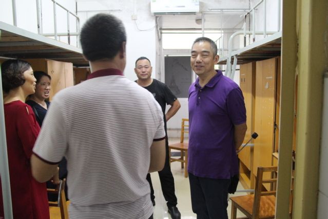 上午9时许,公共管理学院党委书记雷照荣、院长丁士军等人前来迎新点慰问志愿者们,并且在李尚楠老师的陪同下走访了部分宿舍,查看了宿舍的水电设施、家具等。在26栋302室,雷照荣书记与公管1802班学生亲切攀谈,他了解到这间宿舍的4名女生分别来自福建、海南、湖南等地,他指出,同学们虽然来自五湖四海,饮食、生活习惯也各有差异,但现在来到中南大,武汉就是同学们的第二故乡,大家就是一家人,要敞开心扉,积极交流,互帮互助,和睦相处,将四把钥匙开一把锁的缘分一直延续下去。同学们听完雷书记的这番话,纷纷表示受益匪浅。在四楼走廊,丁院长遇到了送孩子上学的家长,他对家长们表示了热烈的欢迎,表示理解他们送孩子上学的辛苦,还向家长们表态:学院一定会尽最大的努力将孩子培养成才,不负家长的期望。