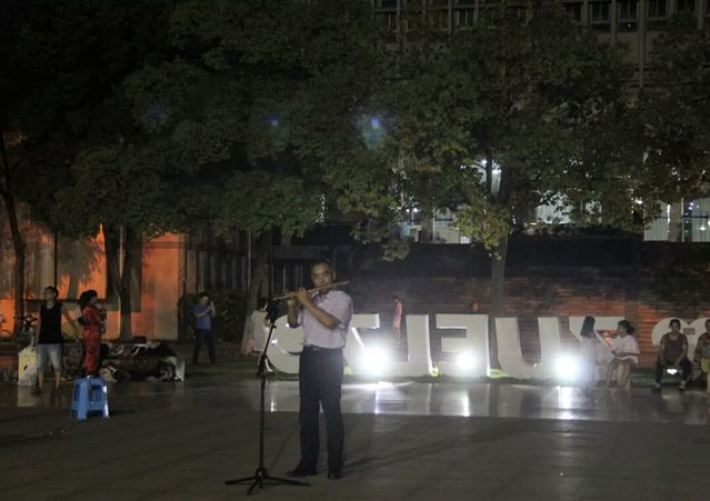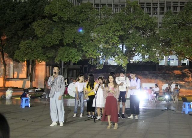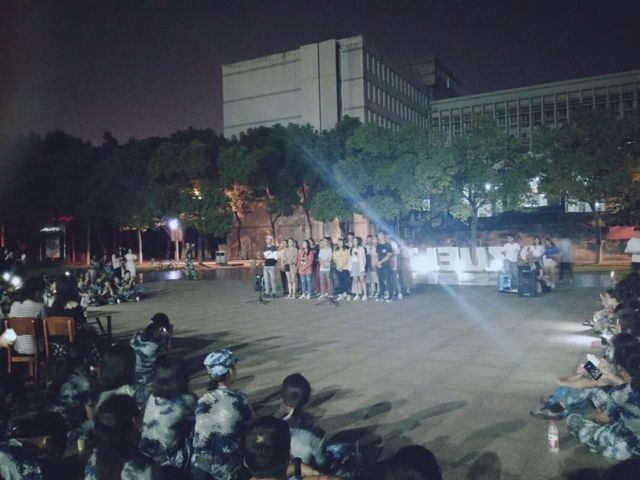 新闻网讯(学生记者 张孟瑶 摄影 李文琦)9月14日晚7点40分,公共管理学院团委学生会及志愿者协会的部分成员乘校车从南湖校区赶到首义校区,为军训中的师弟师妹们送上一台精彩纷呈的文艺晚会。此时,公管学院2018级新生们已在首义会堂前的空地上排列整齐,等待着师兄师姐们的到来。