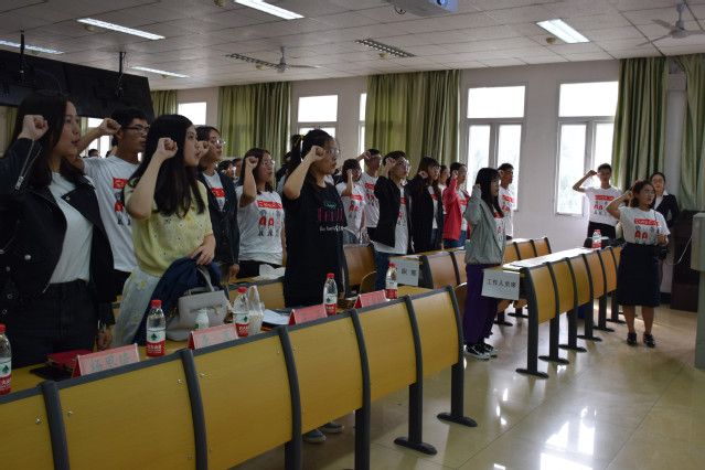 会议伊始,全体成员起立,在张冯的带领下进行庄严宣誓。同学们激情高昂,铿锵有力,展现了团学志成员的昂扬风貌。
