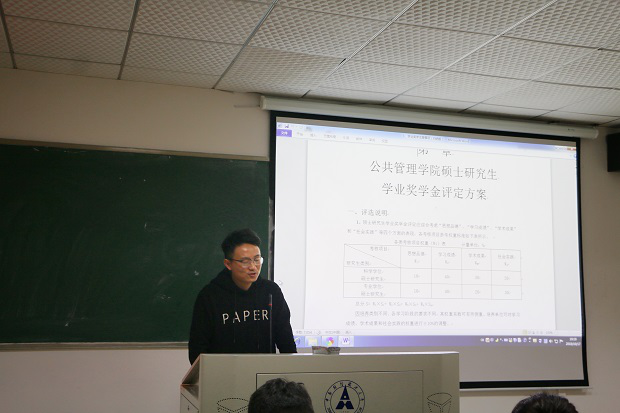 2018年10月17日晚上7点,公共管理学院研究生会学术部在文添楼501教室顺利举办了研究生新老交流会活动。研究生辅导员魏晨雪老师、幸超同学、张阿城同学、王晓芸同学以及田勇同学均在本次活动上做了发言,参与本次活动的还有2018级全体研究生。
