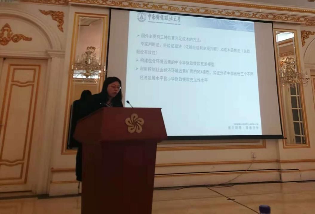 会议主要分为基础教育财政与政策、教育与经济社会发展、高等教育财政及劳动力市场、教育公平与效率、教师发展、家庭教育投资六大主题报告会场。其中,我院魏萍老师在基础教育财政与政策主题报告会上以《县域内义务教育学校财政拨款充足性测算》为题进行汇报,论文主要从义务教育学校财政拨款充足模型构建、义务教育学校财政拨款充足性估算方法、我国县域内义务教育财政拨款充足性估算、结论与政策建议这四个方面展开内容。此次汇报内容获得了点评嘉宾的宝贵意见,并为论文后期修改提供了方法。