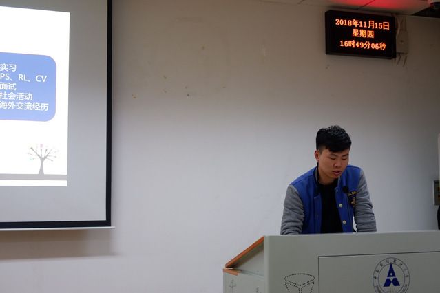 首先,郭老师向同学们提出了“为什么来这里、来这里做什么、最终要去哪里”这三个问题并最终为我们一一解答了这三个疑问。同时在第二个主题中告诉了我们什么是成功的关键。最后,郭老师为我们提出了“知己、知彼、决策、实践”四个关键词,并详细介绍了“知己”中的六个方面,也指出了要明白“知彼”的真正意义必须要学会用行动验证。期间也以小游戏的互动方式,让我们更加融入了此次讲座中。同时,朱老师关于出国留学项目的讲解以及对各国留学要求的详细分析也让我们受益匪浅。