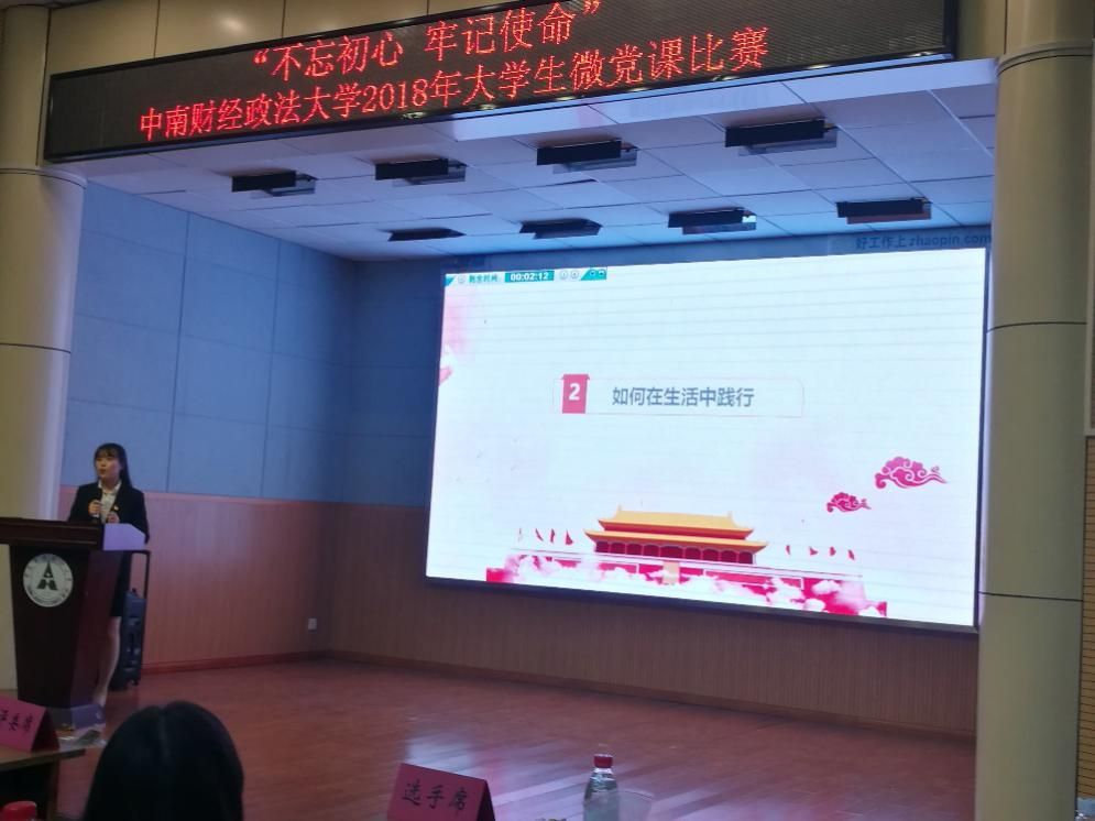 新闻网讯(学生记者 张坤 刘紫琳)由校党委组织部、党委学工部主办的“不忘初心、牢记使命“大学生微党课比赛于11月15日下午在文潭楼一楼报告厅举行,我院本科生2015级刘紫琳和张坤两位同学代表学院党委参赛,并分别取得了第二名和第八名的好成绩,荣获一等奖和二等奖。