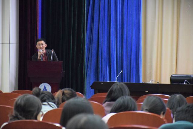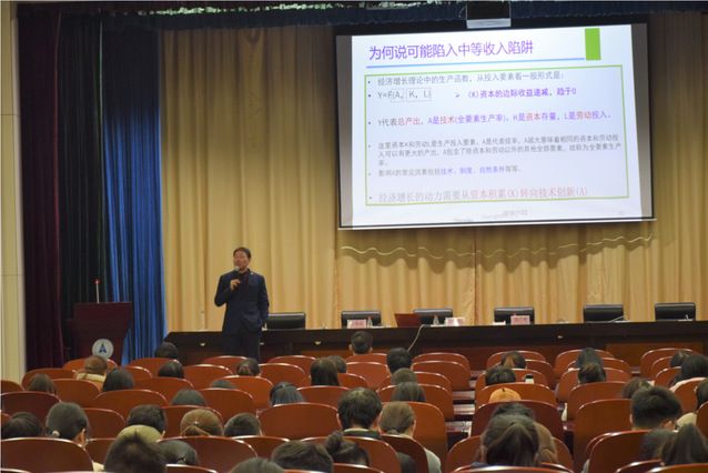 活动伊始,大家通过一段视频回顾了往届“思源•共进”活动的历程。接下来,邹进文副校长致辞,庆祝本次活动的召开。他指出,“思源•共进”系列活动不仅丰富了同学们的专业知识,加强了学校的学术氛围,激发学生的学习热情,更在推进我校文化建设、提高学生素质方面发挥着重要作用。本次活动秉持着一贯的学术性、时代性原则,紧密围绕十九大热点问题和“精准扶贫”主题,能够有效促进师生交流。最后,他对广大学子提出深切期望,并祝愿活动再上一个台阶。
