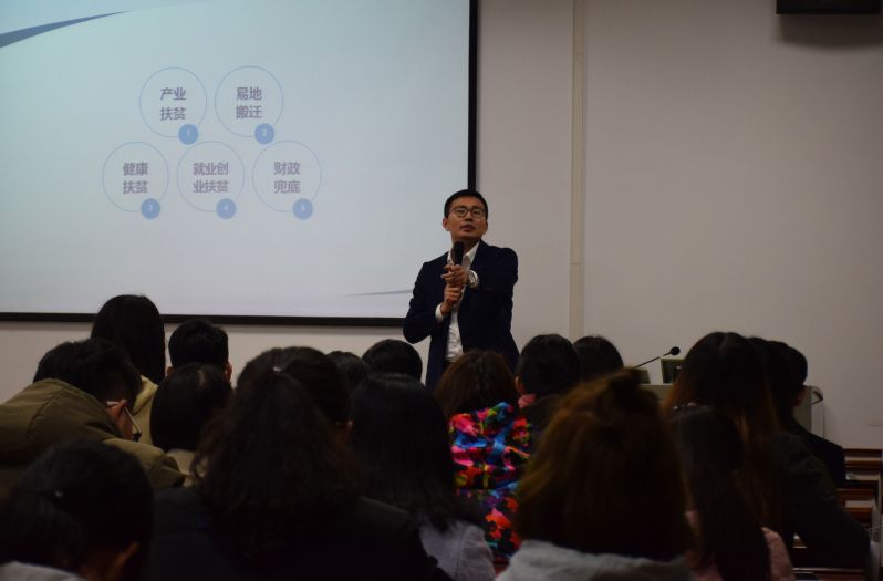 在讲座过程中,庞教授观点犀利独到,从实际情况出发,多次运用举例、类比等方式,用生动幽默的语言让大家对精准扶贫政策有了更深刻的认识。在提问环节中,同学们踊跃提问,庞教授对“非政府组织在扶贫工作中的作用”及“基层干部流动对当地扶贫工作的影响”等问题做出了精彩的回答,进一步强调了精准扶贫政策的重要性与必要性。