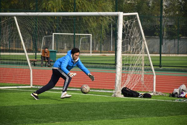 可以说是胜负已定,但保关球员仍不放弃,拼命抢夺球的主动权。城管球员显然看穿了他们的意图,严防死守,保关球员灵活躲闪,或出其不意地向斜后侧传球,或闪避运球。趁城管守门员精神松懈之际,保关队员飞起一脚,将球稳稳送入门中!