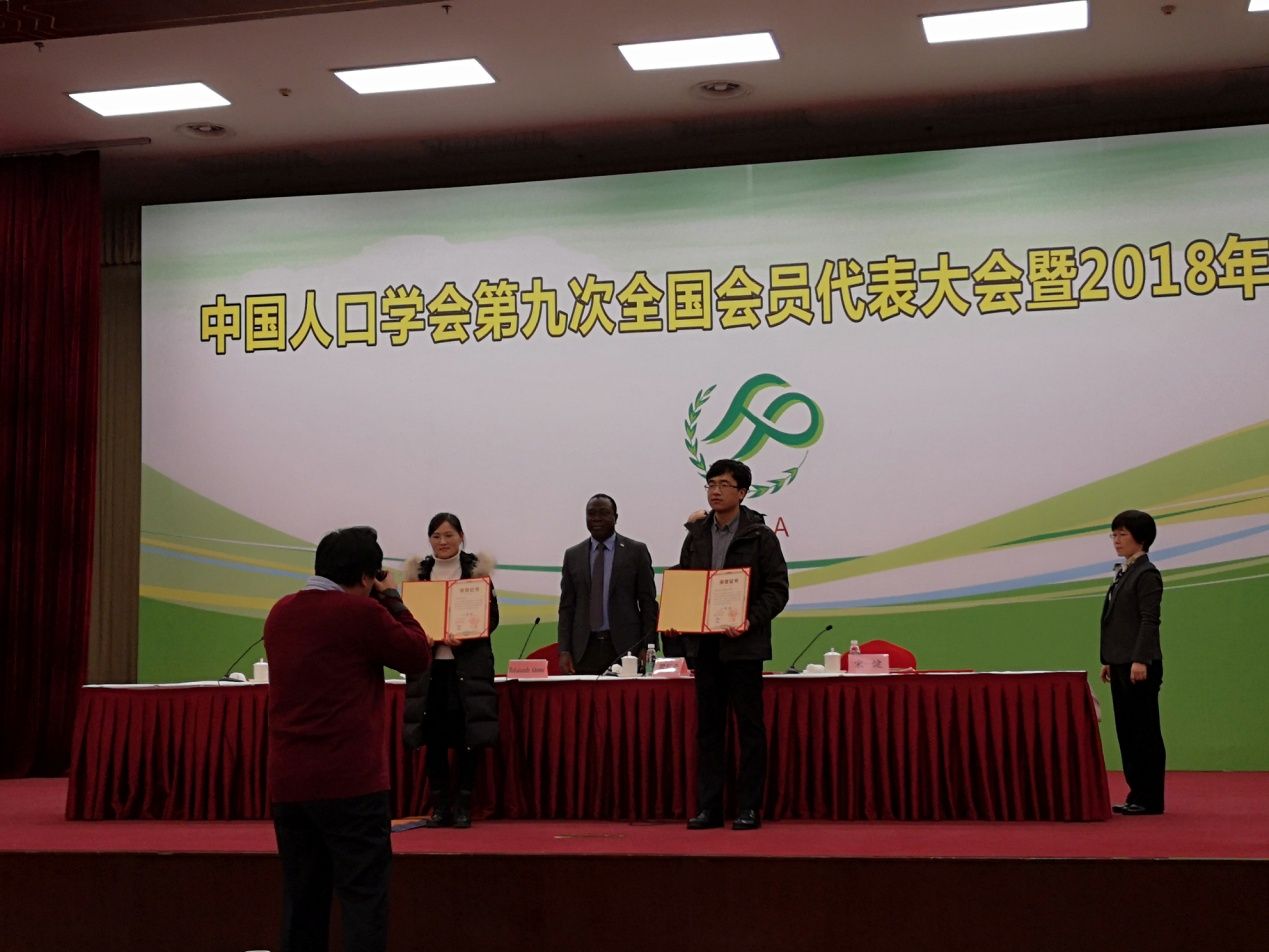 在会议上,我院共有7人获奖。其中,石智雷副教授荣获“第七届人口科学优秀成果奖”一等奖;在“第三届全国青年学者人口研究论坛(2017)优秀论文奖”奖项中,区域经济学硕士研究生杨雨萱荣获一等奖,区域经济学硕士研究生张友业、向华丽副教授荣获三等奖,社会保障博士研究生尚越等荣获鼓励奖。