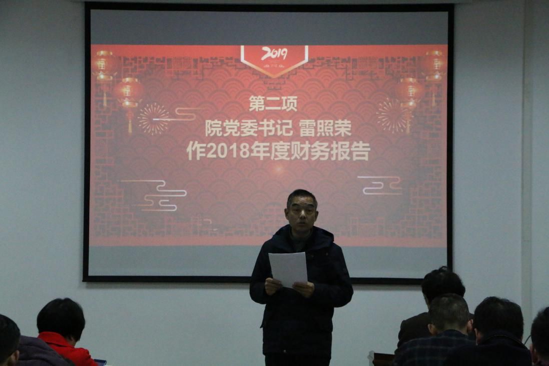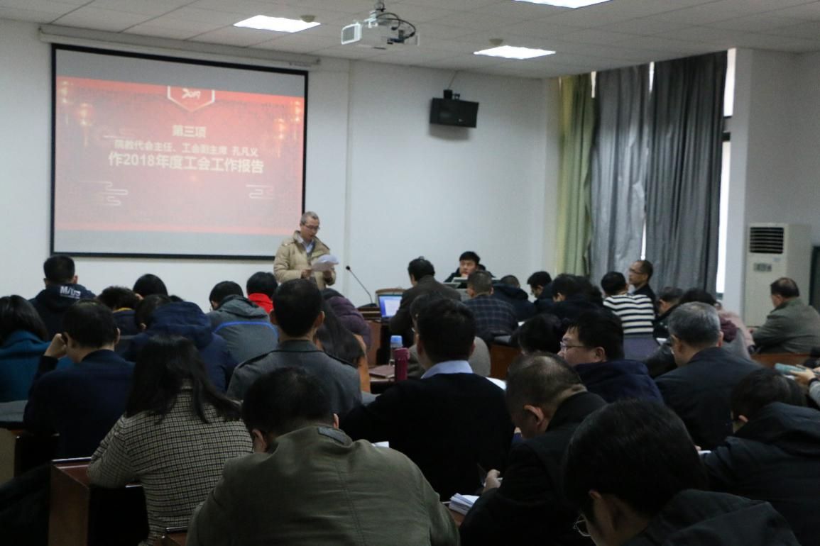 大会最后一项院教代会主任、工会副主席孔凡义在会上作了《2018年度工会作报告》,回首过去一年,学院工会认真贯彻落实党的十九大精神和中国工会十七大精神,在校工会和学院党委的正确领导下,在全院教职工的积极参与和大力支持下,围绕学校、学院中心工作,始终坚持全心全意为教职工服务的宗旨,立足于加强自身健身,立足于多为教职工办实事、办好事,立足于组织引导教职工积极参加各项文体活动,立足于维护教职工的合法权益,做了大量工作,增强了学院内部的凝聚力和战斗力,为学院发展做出了积极的贡献。