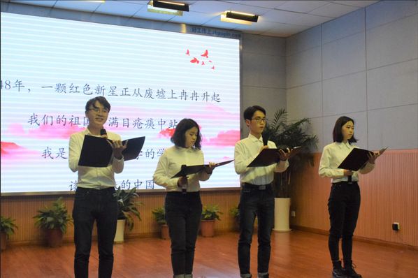 在颁奖晚会进行过程中,我院同学们还带来了诗朗诵《追寻》,向同学们呈现了我校建校七十周年的光辉历程。“大风泱泱,大潮滂滂,光阴流转,初心不忘,回首追寻,仍记理想,七十新岁,与国同昌。”朗诵的同学们慷慨激昂,台下的观众们听后也异常振奋,新时代的我们也理应自强不息,成为时代的弄潮儿。最后,本次颁奖大会在合唱《光阴的故事》中落下帷幕。