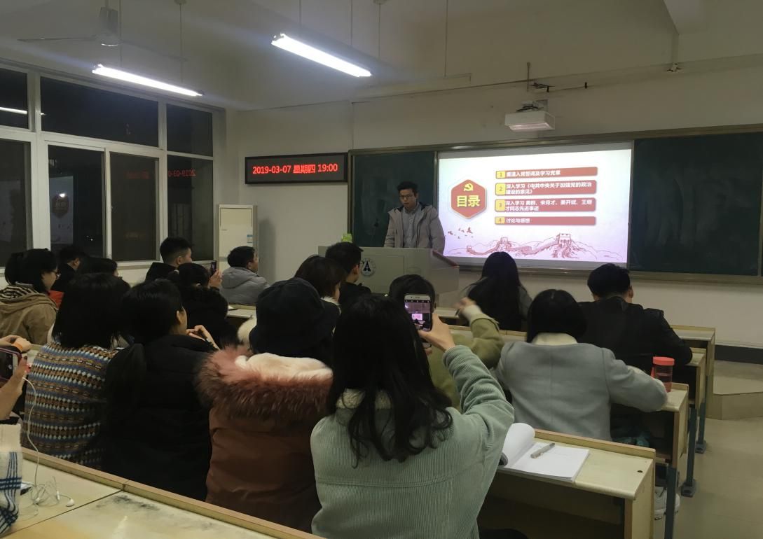 2019年3月7日,研究生1701支部在文添楼101教室开展支部主题党日活动