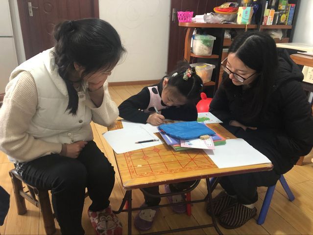 在本次活动中,志愿活动的对象——已经成功佩戴人工耳蜗的小伟(化名),是一个聪明、腼腆的小姑娘。在志愿者刚刚到达家庭时,她非常拘谨,但随着志愿者们和她的互动,她渐渐开朗、活泼起来。志愿者们和小伟一起复习了拼音、汉字,在这期间小伟认真地纠正了志愿者们的书写,而志愿者们也耐心地按“小老师”的指导做了纠正,小伟还带领志愿者组织了抢凳子等小游戏,大家一起弹琴、唱歌,小屋里欢声笑语不断。