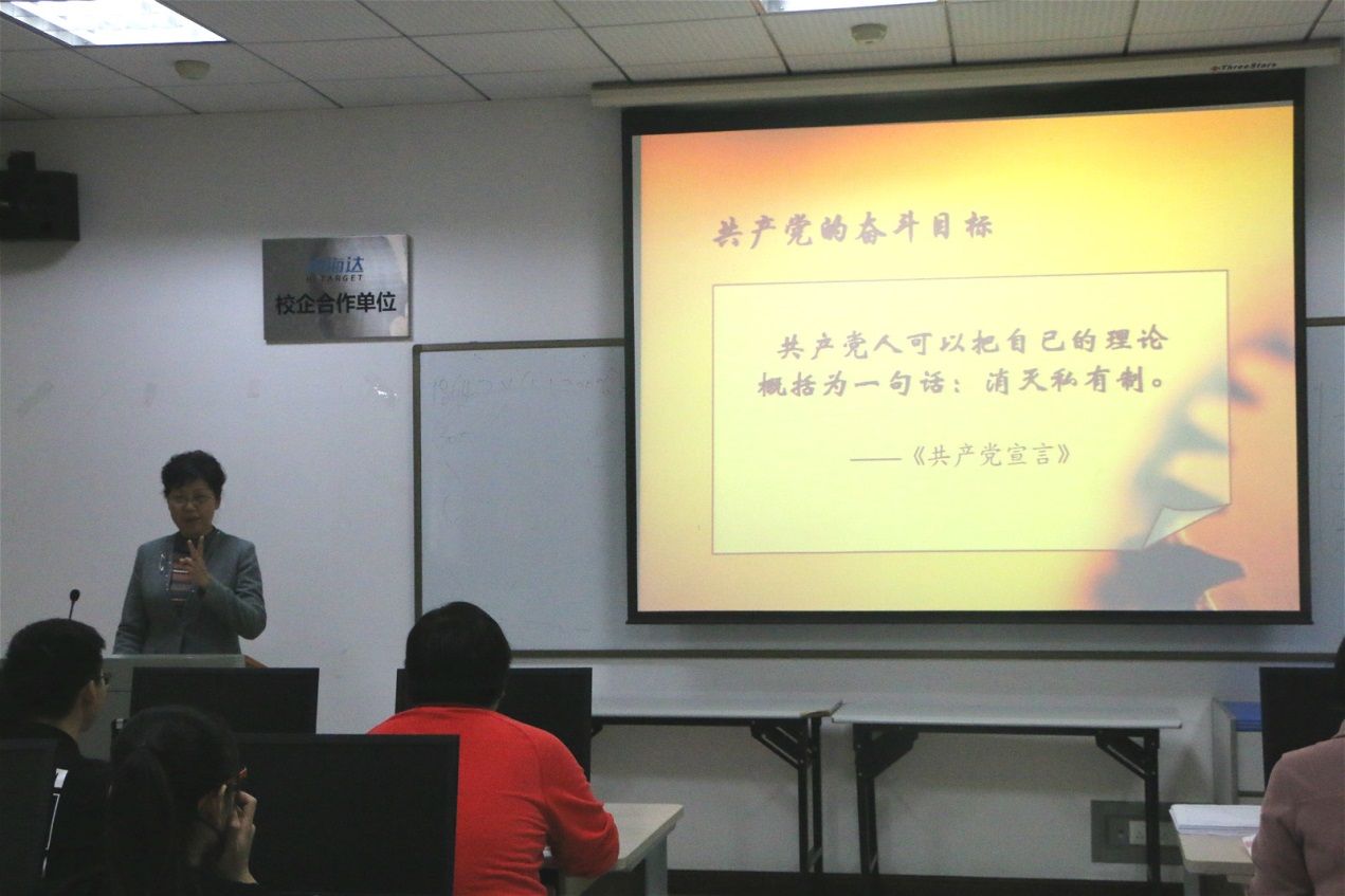 本次开班第一讲由徐双敏教授为大家讲授“中国共产党的奋斗目标和基本路线”。共产主义是党的最终奋斗目标,徐老师的授课由“共产主义”开始展开。徐老师指出共产主义的最初蓝图可以追溯到16世纪英国人托马斯·莫尔的《乌托邦》,这里面描述了生产力高度发达,按需分配的社会想象。之后,徐老师从马克思主义哲学、政治经济学和科学社会主义进行讲解,同时界定了各个时期的“共产主义”概念。然后就其产生的理论渊源以及实践基础进行了分析,从而对空想社会主义以及三大工人运动进行了追溯和解释。最终徐老师从思想体系,社会制度等几个维度对其中的“科学社会主义”进行了分析,回归课堂起点,逻辑严密。在整个过程中,徐老师还穿插了马克思与恩格斯个人事迹,使课堂更加富有生动性。