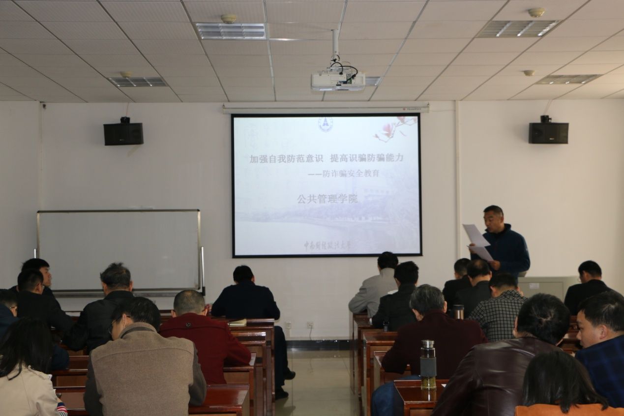 此次会议还安排了工会活动、学科建设会议、年度经费预算、教学及年度学科经费使用情况等工作。至此,本次公共管理学院全体教职工例会暨防诈骗安全教育主题会议圆满结束。