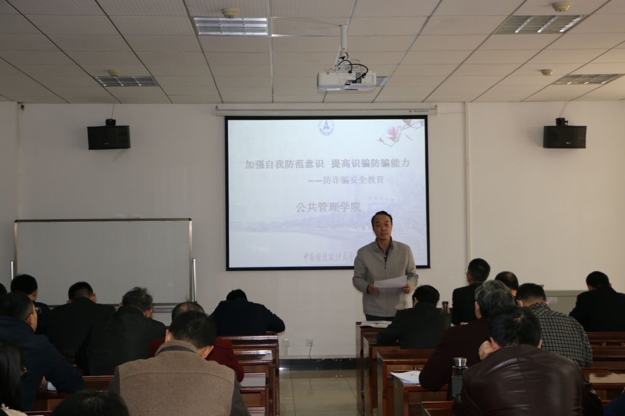 4月11日下午,公共管理学院全体教职工例会暨安全教育主题会议在文泉楼北203会议室顺利召开。为加强公共管理学院教职工自我防范意识,提高识骗防骗能力,增强安全意识,全院教职工参加了会议,会议由院长丁士军主持。