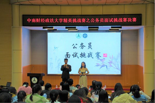新闻网讯(学生记者 罗曦 摄影 沈董菲)2019年4月12日晚7点,由公共管理学院学生会和公共管理学院研究生会共同承办的2019年公务员面试挑战赛决赛在我校南湖校区文潭楼一楼招聘厅举行。莅临本次大赛的评委有三立公考校长石晓、三立公考面试王牌讲师曾小蔓、江夏区人民法院政治处杨睿,同时出席本次活动的嘉宾还有公共管理学院团委书记、2016级辅导员李荔。