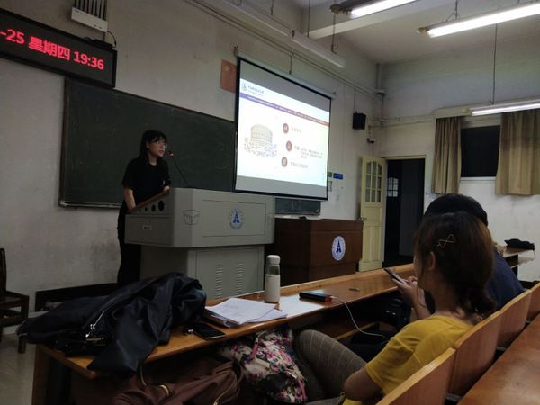 首先,由考研到本校的蒲东霞进行经验分享。她结合自身实际状况,针对院校专业的选择、信息和资料的收集、准备过程以及心理建设四个方面的问题为大家进行经验分享。她指出要根据自身实力、兴趣进行选择,并且坚持自己的选择。她为大家介绍了一些比较好的资料收集方法,可以从报考学校或者专业的考研群、微信公众号、专业机构、学校图书馆网站、微博等,并且当场为大家进行演示。最后,她结合自己的考研经历,为大家推荐了一些考研书和复习方法。