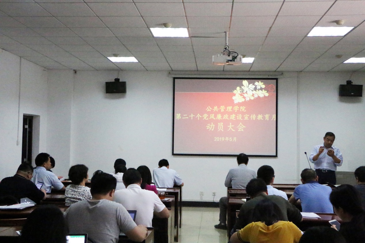 为进一步做好公共管理学院党风廉政建设工作,按学校党委统一安排部署,2019年5月23日下午2点,公共管理学院在文泉楼北203会议室召开第二十个党风廉政建设宣传教育月活动动员会,传达学习《米兰电竞·(中国区)第二十个党风廉政建设宣传教育月活动方案》,部署近期党风廉政建设工作。本次会议由院党委书记雷照荣主持,学院全体教职工参加。