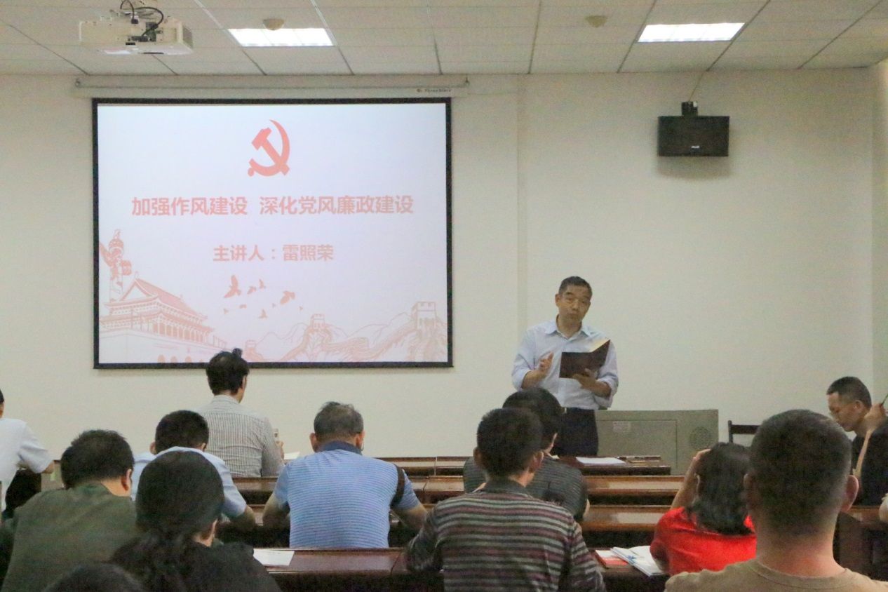 然后,雷书记以“加强作风建设,深化党风廉政建设”为主题,为学院教职工讲党课。雷书记首先结合党的十八大以来教育系统查处的违规违纪典型案例,以案说纪、以案警示,要求全体教职工引以为戒,牢固树立底线思维、严守党章党规党纪、努力做到忠诚、担当,并高度重视学生的每一个诉求。随后,雷书记带领大家学习了党章中党的干部、党的纪律和党的纪律检查机关等章节,进一步对十九大中对党章的修改内容进行了解读。通过学习讨论,全体教师进一步加深了对新修订党章的理解认识。大家认识到党的纪律的“铁”性,是保持党的纪律的严肃性和有效性,是使党不断进步和发展的重要保证。