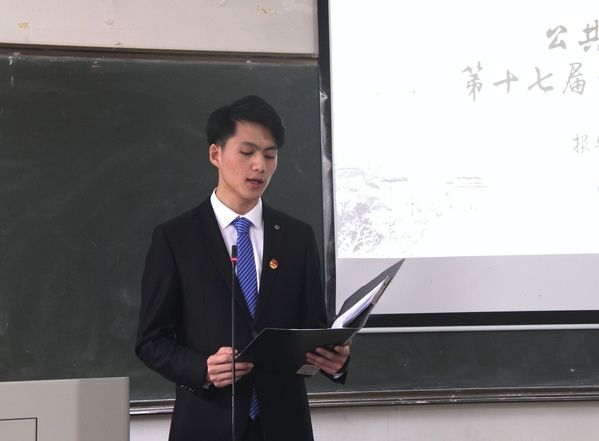 在计票的过程中,李凤武作《公共管理学院第十七届学生会工作报告》,报告获得在场学生代表的全票通过。之后,总监票人杨佩璇宣布选举结果及《公共管理学院第十八届学生会主席团名单》,承嘉欣、宫铭珠和黄心怡被选举为院第十八届学生会主席团成员。